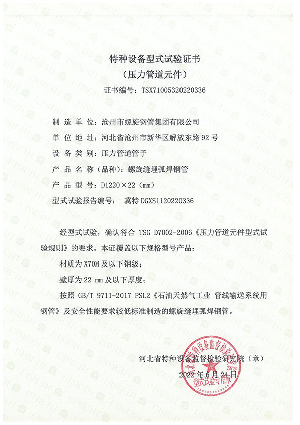 特種設(shè)備型式試驗證書
